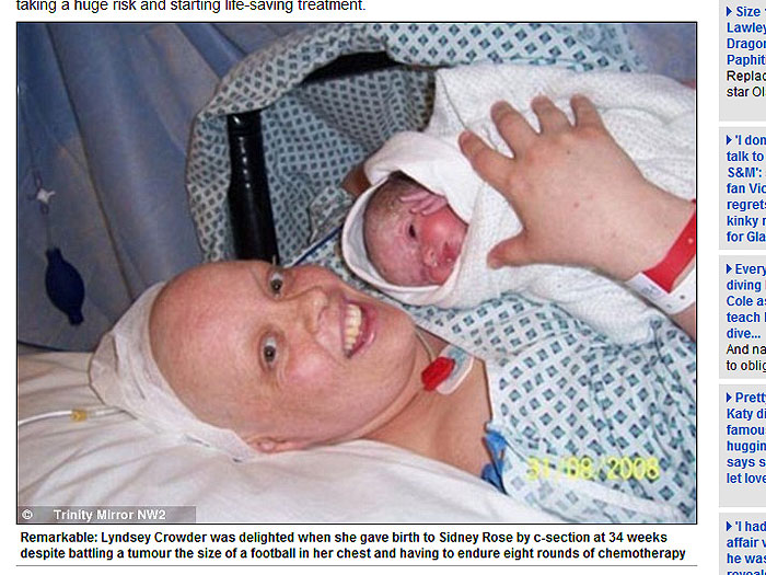 Lyndsey Crowder ficou muito feliz quando descobriu que estava grávida, depois de ter perdido três bebês. Porém, dias depois da descoberta, os médicos a informaram que ela tinha o linfoma de Hodgkin, e que possivelmente teria apenas algumas semanas de vida.